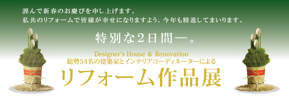 春から、新しく生まれ変わった空間で過ごしたい!そんな方に必見です。 テレビのようなリフォームをしたいけど、どうすればいいのかわからない…。そんなお悩みありませんか? 年始めのこの機会にリフォームのこと、新築のこと、女性建築家・コーディネーターとご一緒に考え始めませんか? 今回の作品展はリフォームデザインコンテスト受賞リフォーム作品を中心に展示しております。 総勢54名を超えるデザイナーのリフォーム実例写真や提案プランをギャラリー形式で ご覧になりながら、あなただけのリフォームアイディアを見つけてください。